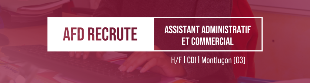 AFD recherche 1 Assistant administratif et commercial (H/F) à Montluçon (03) avec déplacement possible sur les différents sites.