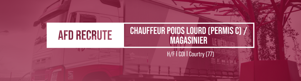 AFD recherche 1 Chauffeur poids lourd permis C / Magasinier (H/F) à Courtry (77).